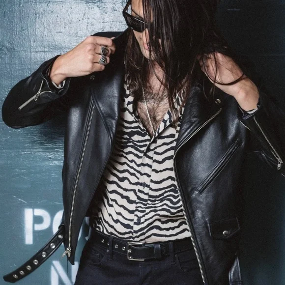 Cowhide leather biker jacket