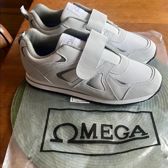 Omega Velcro sneakers with a modern gray and white design. Perfect for activity. New, not worn.
