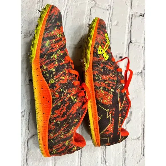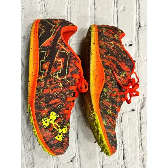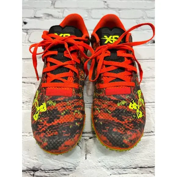 This is pair of Under Armour Brigade XC Low "Phoenix Fire/High Vis Yellow" Unisex Track Spike. **MEN’S size 8/ WOMEN’S 10**Pre-owned, but in excellent condition with no visible flaws. Product DetailsYou need your cross-country Under Armour Brigade XC Low "Phoenix Fire/High Vis Yellow" Unisex Track Spike to grip on the harshest terrain, feel light, and keep you moving. These do all that and more, with a Pebax® springplate for quicker takeoffs and a Michelin® outsole to shed mud.BenefitsBreathable, lightweight mesh upper provides enhanced ventilationMolded heel cup with interior padding for comfort & supportArchFit system locks in the arch for precise fit & foot guidanceUltra-strong, ultra-lightweight Pebax® plate strategically placed in forefoot for explosive takeoffsMichelin® Wild Gripper rubber outsole rubber uses unique traction lugs for grip & traction on any terrain4-pin spike construction keeps you on your toes & adds even more traction. ⭐️ I sell only EUC or NWT items that come from a single owner, smoke-free, cockapoo-friendly environment. NOT thrifted. If there is any sort of flaw I will mention it in the title and write it in CAPS in the description.⭐️ I’m an active seller and usually ship next day.⭐️ I’m always happy to offer a discount on bundles of more than one item.⭐️ Please feel free to reach out to me with any additional questions!
