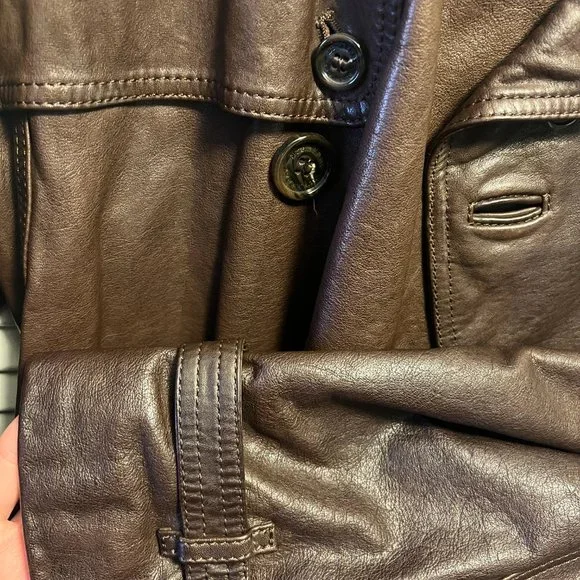 Bought 5-6 yeas ago, male size L , only worn 10 times. Never worn many times for 10 years. Original Burberry real leather. Super clean and bought from Europe. It is male size and suits on women as well. This item is unique peace from it´s original year, can not even find same item anymore. So it is very special.