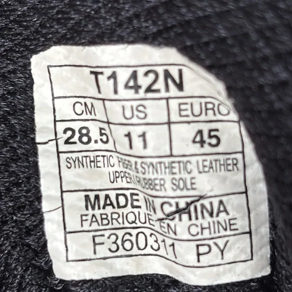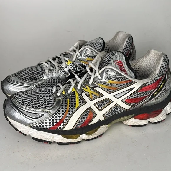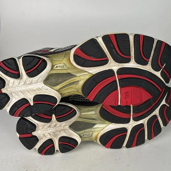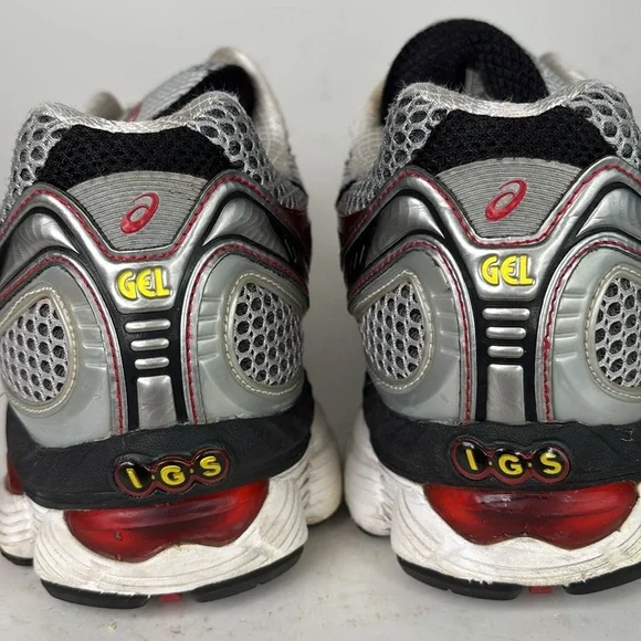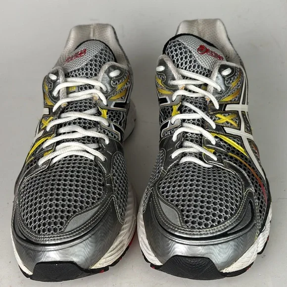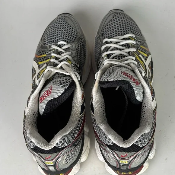 Mesh top running/casual shoe.Preowned in good condition with signs of wear.The upper mesh is in excellent condition with light signs of wear with no holes.The rubber foam upper shoes friction wear and some soiling.(We only do a general cleaning).These will clean up nice.Soles show little sign of normal wear.Insoles have no wear or friction marks.Gray, silver, black, red and yellow colors.Size 11