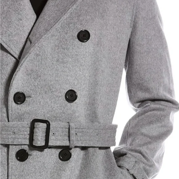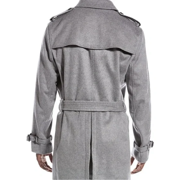 Wool & Cashmere-Blend Military Coat in grey with storm panels, side slip pockets, buckle straps at cuffs, inverted back pleat, and belted waist. RETAIL PRICE- $1895 USD...