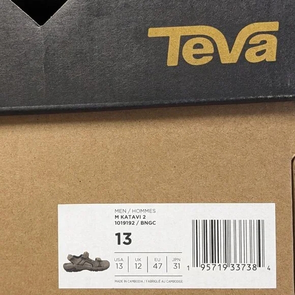 Teva Katavi 2 sport sandals for men in excellent condition. Ships in the original shoe box.- Suede upper- Hook and loop closure- Arch support