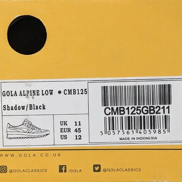 Gola Alpine Low sneakers for men in good condition. Uppers are in great condition. The soles have some signs of wear. See pictures. Ships in the original shoe box.- Nylon and suede upper- Water repellant