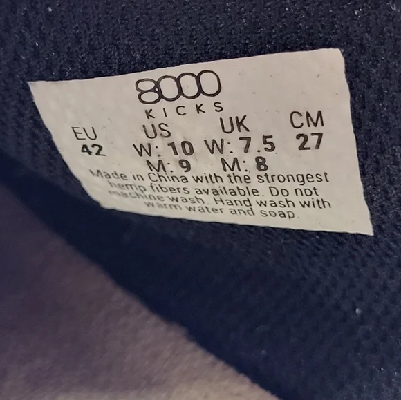 8000 Kicks Men´s 9 The Explorer Hemp Shoe Black and White