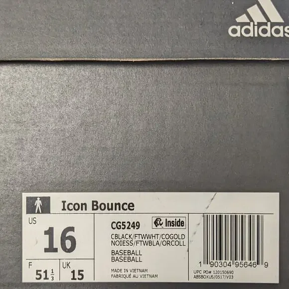 Adidas Icon Bounce baseball cleats for men in new condition. Ships in the original shoe box.- Metal cleat- Lace-up closure