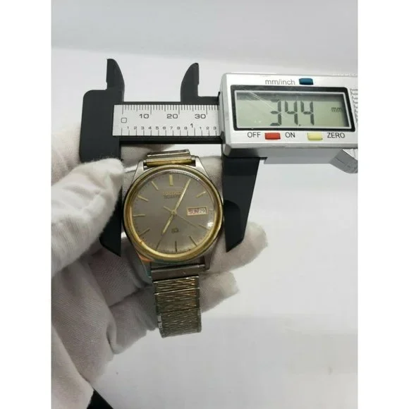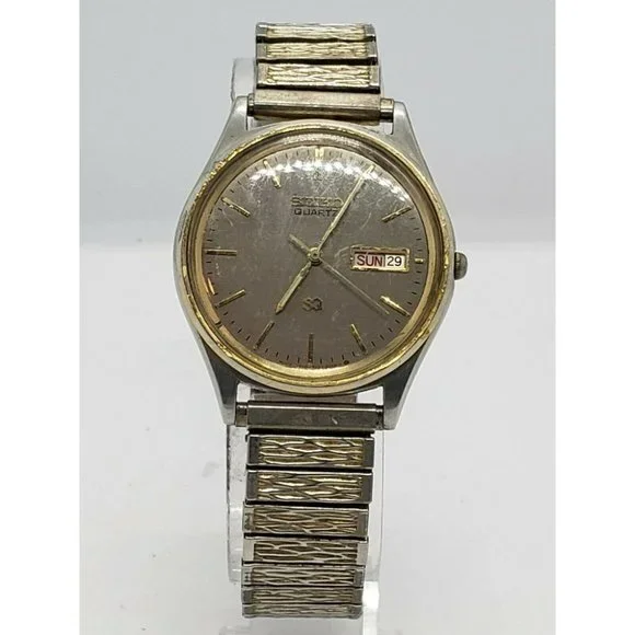 Vintage Seiko Gray & Gold Day Date 5y23-8040 34mm Men´s Watch. Condition is "Pre-owned". Shipped with USPS Priority Mail. This watch needs a battery replacement.