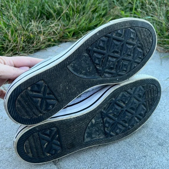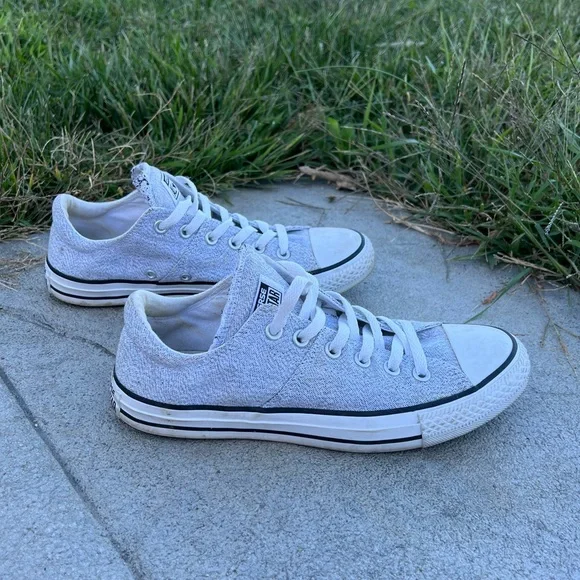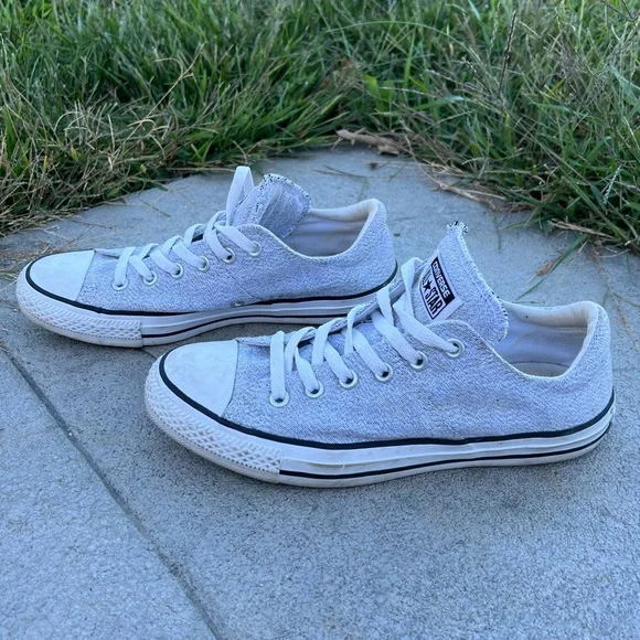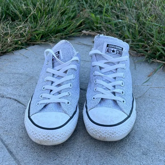 This is a gently used pair of gray all star converse low top vintage looking shoe sneakers. They are a size men’s 7, women’s 9. No visible flaws. Measurements are approximate...