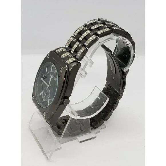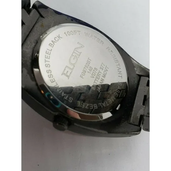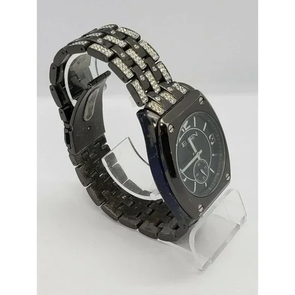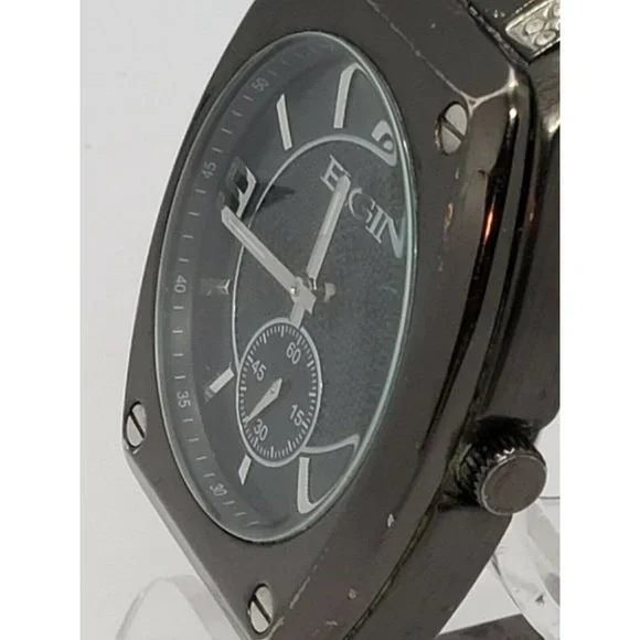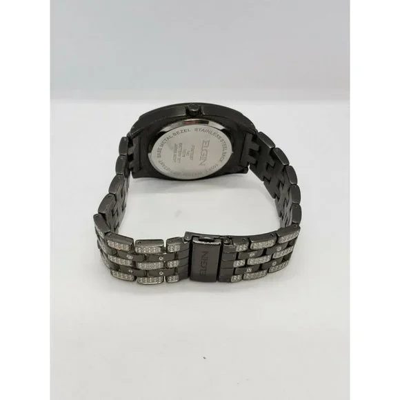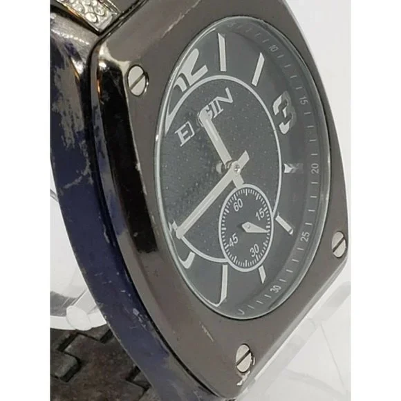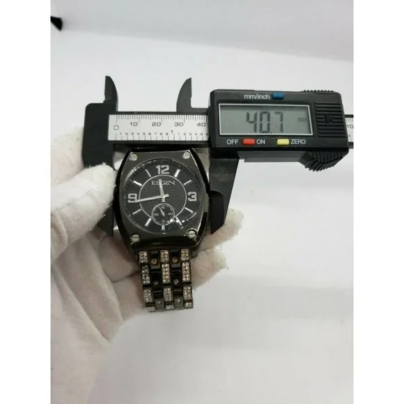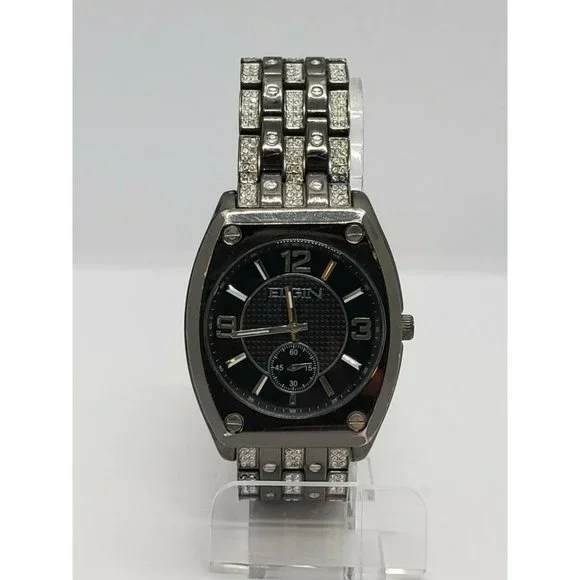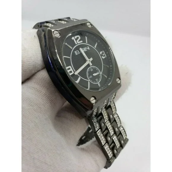Vd78 Elgin Black Bling Men´s 40mm Rectangular Watch. Condition is "Pre-owned". Shipped with USPS First Class.