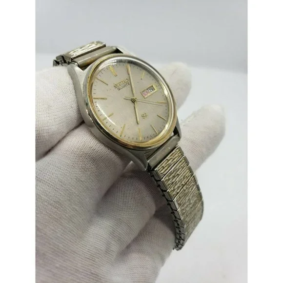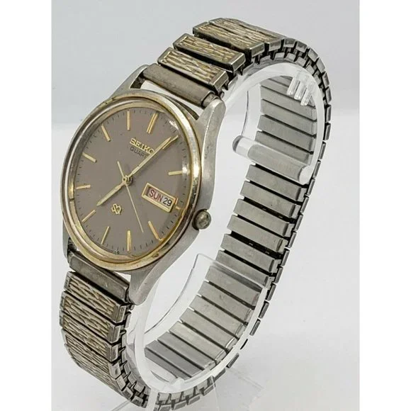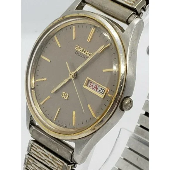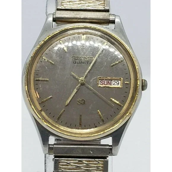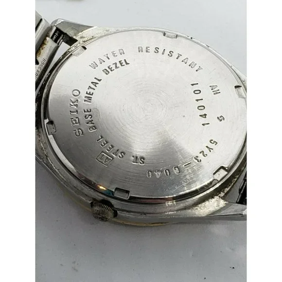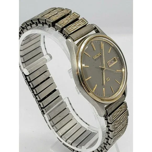 Vintage Seiko Gray & Gold Day Date 5y23-8040 34mm Men´s Watch. Condition is "Pre-owned". Shipped with USPS Priority Mail. This watch needs a battery replacement.