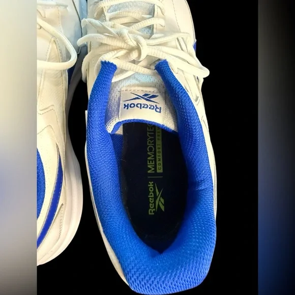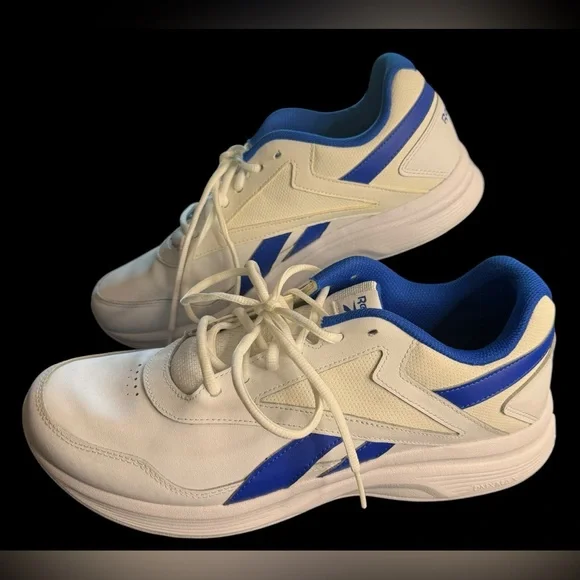 REEBOK Walk Ultra 7 DMX Max Mens Tennis Shoes in White with Blue accents. Perfect for walking and getting in steps with the memory tech comfort premier Ortholite insole. Selling for my neighbor as he ordered and wore a bit and decided he wanted a different size. Listing several size 12 men’s shoes. See my closet to bundle and save. **Please note there is NO BOX