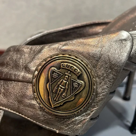 Gold Leather Cris Cross Stiletto Heels Size Euro 37 1/2 C,US 7 Shoes