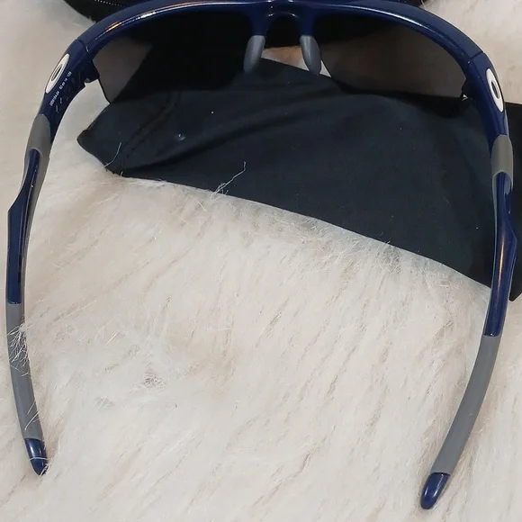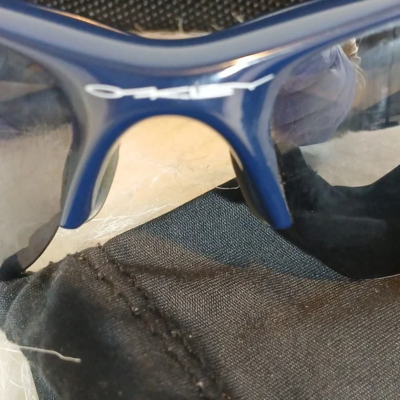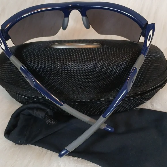 Oakley Sunglasses Jacket 2.0 Men´s Frame color: polished Blue.Fit: standard. Lens color: black iridium. UV Protection: All Oakley lenses block 100% of UVA, UVB & UVC rays and harmful blue light up to 400 nm. Minorscuffs and scratches on arm of Sunglasses. Normal wear. Pre-owned