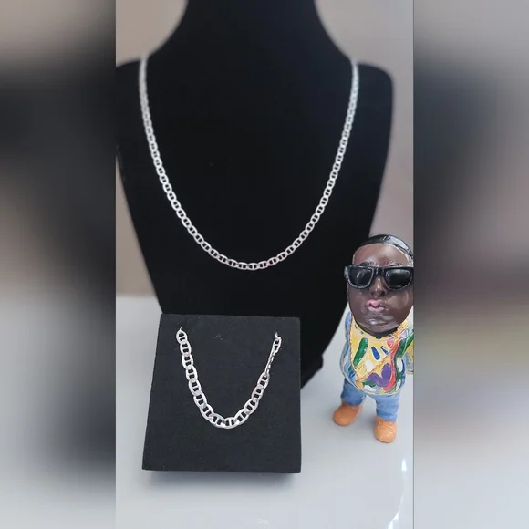New Mariner style sterling silver chain. Can be sold separately chainsize:24"weight: 8g3.5mmPrice: $60Bracelet size: 8in weight: 5g4.3mm$45
