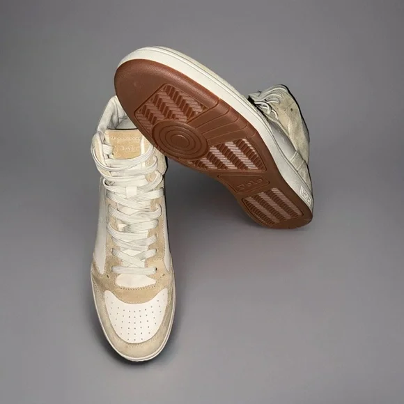 NEW Polo Ralph Lauren Court Leather Suede High-Top Sneaker Bone Cream Size 11.5