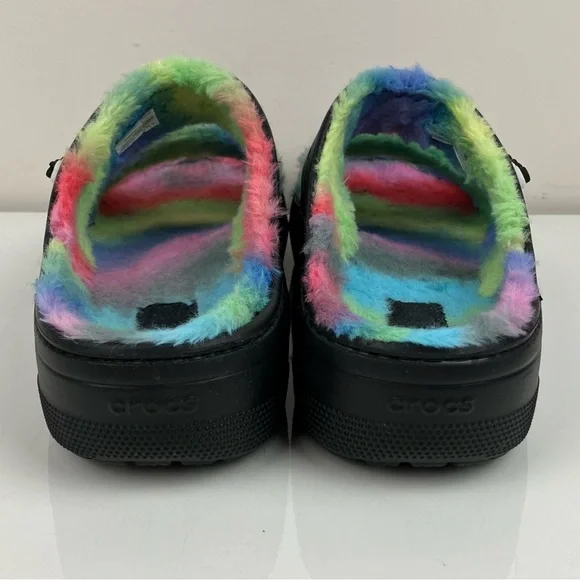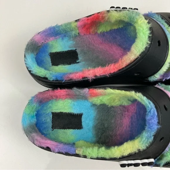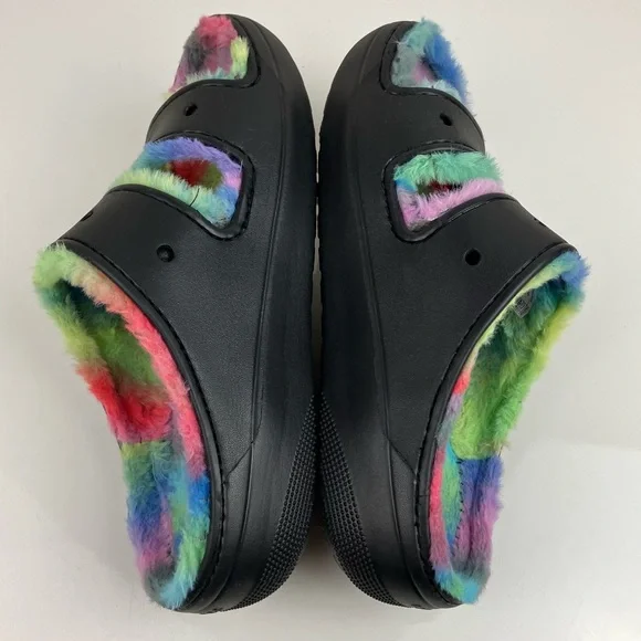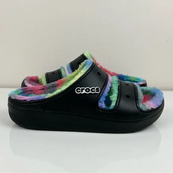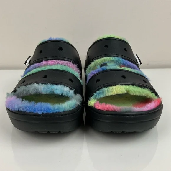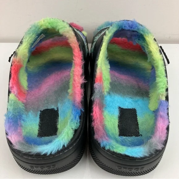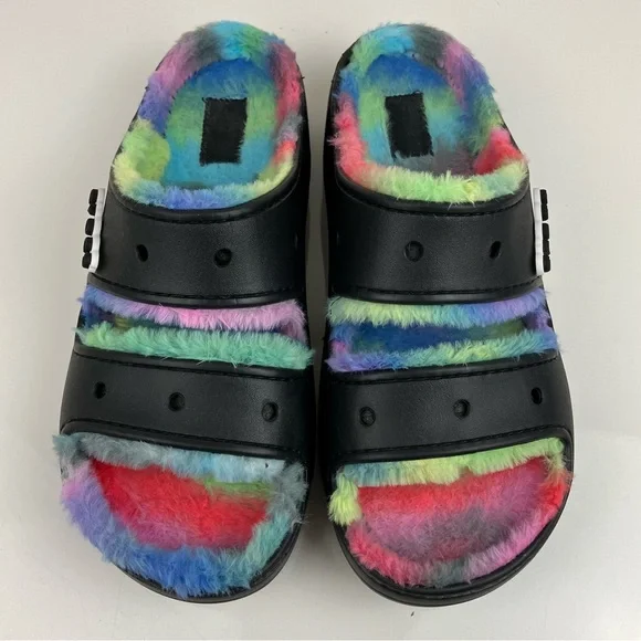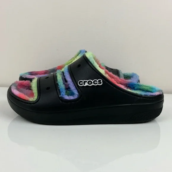 Crocs Men’s Size 10.0 Classic Cozzzy Spray Dye Black Fuzzy Lined Sandals (W12)