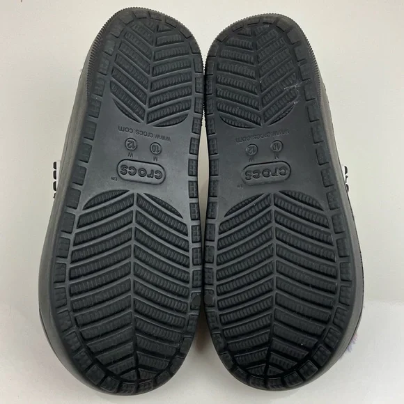 Crocs Men’s Size 10.0 Classic Cozzzy Spray Dye Black Fuzzy Lined Sandals (W12). Sandals are used but in good condition, overall normal wear. Has a couple marks/blemishes on uppers and normal wear on soles. Has a few pet furs on lining. Plenty of life left, pictures show details!