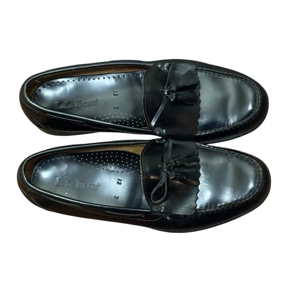 Very Nice L.L. Bean Tassel Kiltie Loafers Black Leather Slip On Dress Shoes. Men’s 12 D.