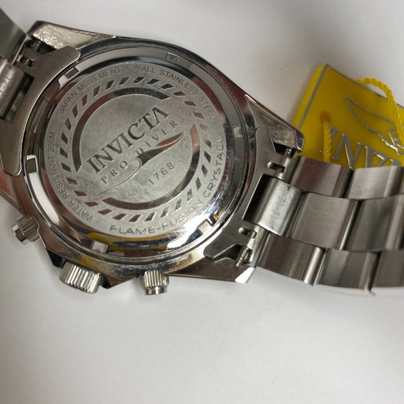 Invicta 1768 Pro Diver Quartz Chronograph Black NEEDS TO CHANGE the battery.Good Preowned condition but may contain some scratches and scuffs. With Box and papers.Please ask any question you have. I will gladly answer them.