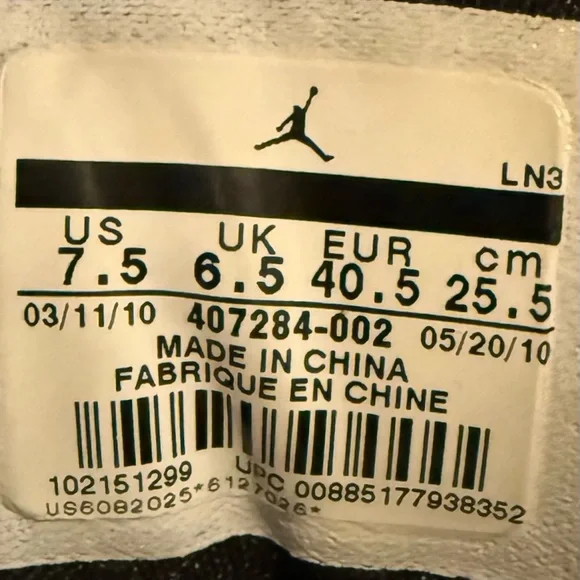 Jordan Men´s Black and White Sneakers Size 7.5