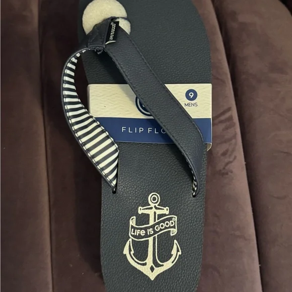 Embrace the coastal vibe with Life Is Good Blue Nautical Sandals, featuring a stylish anchor motif and a classic navy and white color scheme. Perfect for beach outings or casual strolls, these sandals offer both comfort and a touch of maritime flair. Enjoy the lightweight design that makes them ideal for warm weather adventures.
