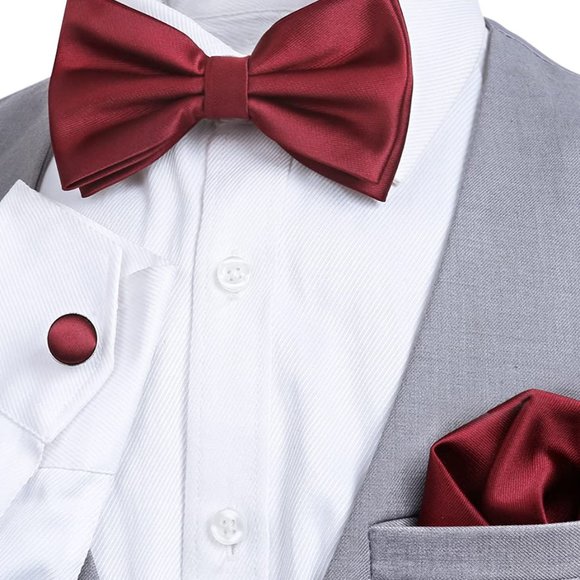 LONG-TERM USE: Your expectation will be fully satisfied its fantastic quality of the material, which guarantee you a long term wearPERFECT GIFT: Gift box packaged, including 1*bow tie, 1*hanky, 1 pair of cufflinks, which are important accessories to men’s collection and can be an excellent gift for father, husband or boyfriend