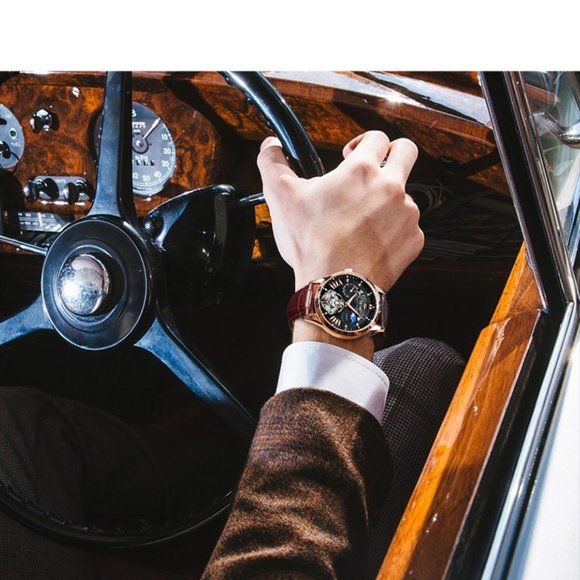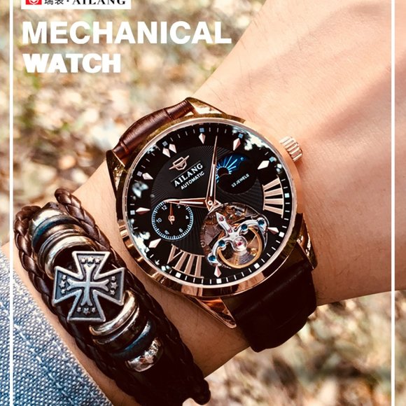 AILANG Quality Tourbillon Men´s Watch Men Moon Phase Automatic Swiss Watches Mechanical Transparent Steampunk Clock