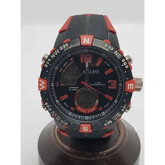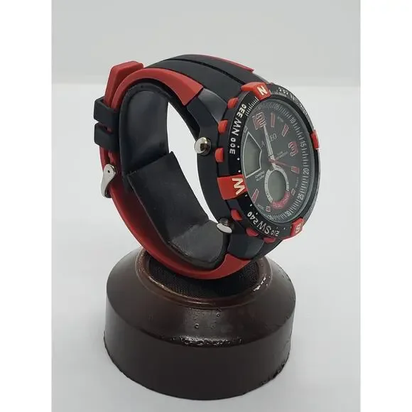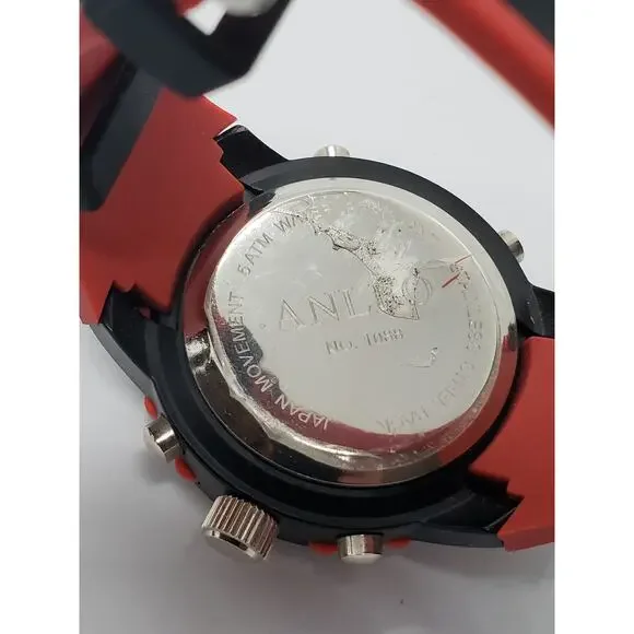 Anleo Men´s Watch 1088Black And Red Watch50.8mm Face That Fits a 8" WristNeeds Battery Replacement, Sold As Is