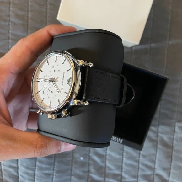 Emporio Armani Chronograph Leather Strap Watch, 46mm