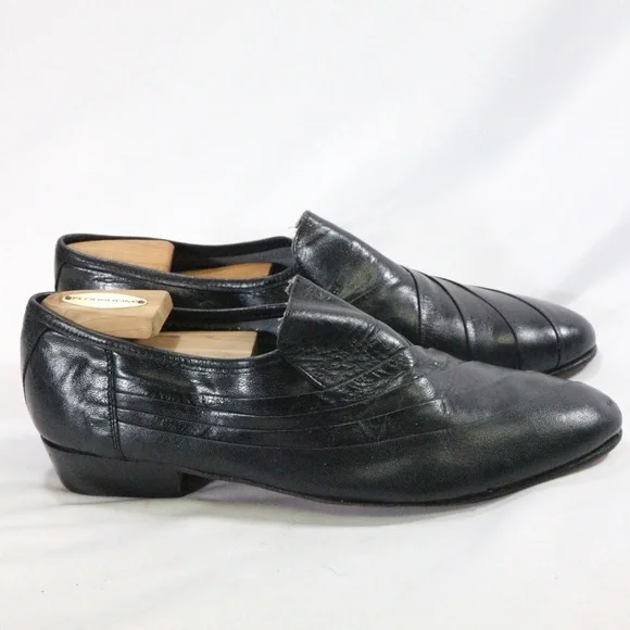 VTG STACY ADAMS Mens Black Leather Loafers Sz 10.5 US Men