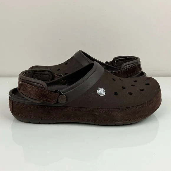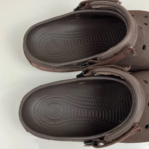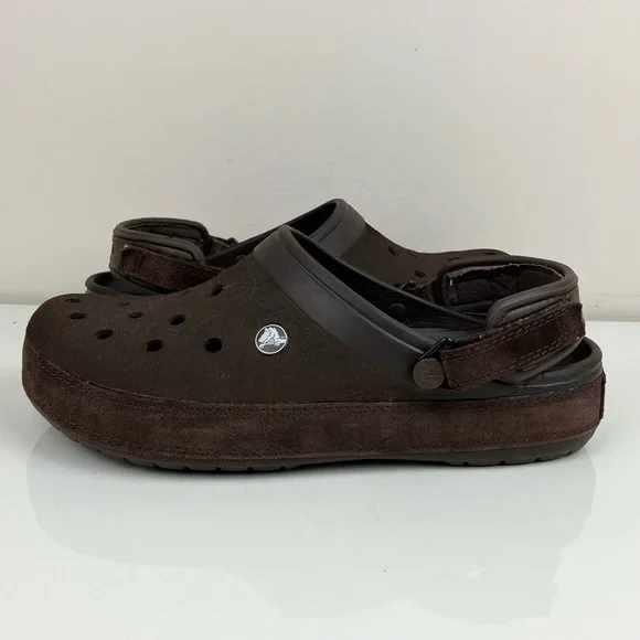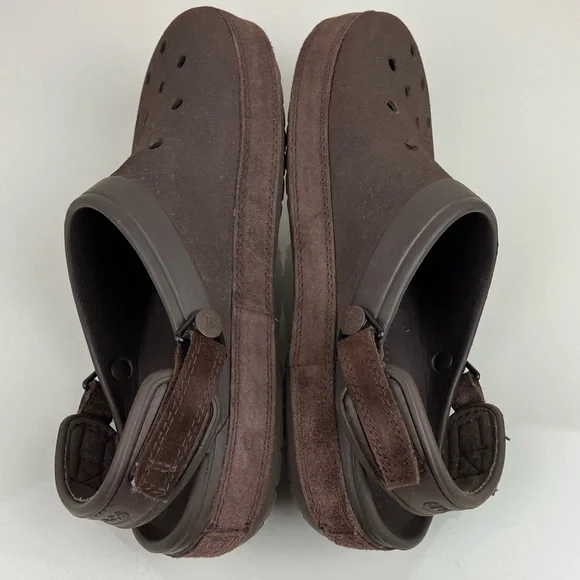 Crocs Men’s Size 9.0 Classic Clog Triple Brown Suede / Texture Adjustable Shoes