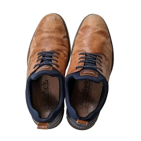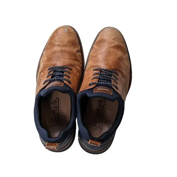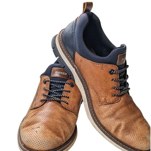 Rieker Shoes Mens 8.5 EU 41 Brown Leather Perforated Derby Sneakers European