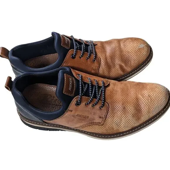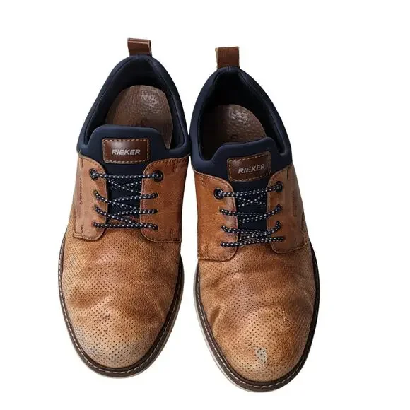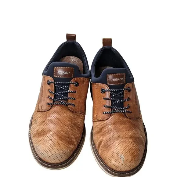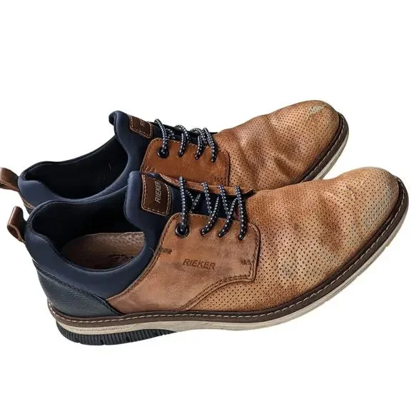 Rieker Shoes Mens Size 8.5 EU 41 Brown Leather Perforated Derby Sneakers Lace Up EuropeanCONDITION:Pre-owned. Fair condition with some wear, scuffs, and creasing on leather. Review photos for details.PACKED WITH CARE:Ensuring safe transportation with careful packing.SHIPPING:Swift shipping! Same or next business day.CONTACT:Reach out with questions. We´ll reply ASAP, even during TV binge-watching.ABOUT US:A family-owned and couple-run small business. She was born in a vibrant African village, while he hails from the USA. Together, they curate a collection of treasures from around the world.Discover vintage curiosities, statement pieces for your home, rare gems, and the delightfully odd. Lose yourself in untold stories of rare books or nostalgic collectibles. Fashion, Home Decor, Rare books, African Art, Christmas, Nutcrackers, Sculptures, Collectibles, and more.