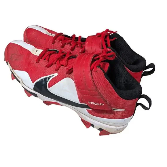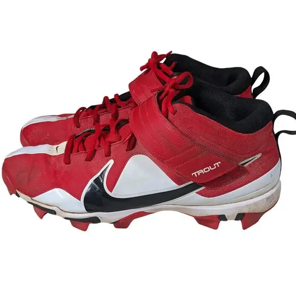 Nike Cleats Force Trout 7 Fastflex Keystone Mens Size 12 Red Baseball Mid High Top CT0831-602Size: Mens 12 (US) / 46 (EU)Color: Red, White, BlackFastflex sole for superior tractionMid-to-high top for ankle supportLace-up closure with pull tabs for easy wearCONDITION:Pre-owned. Fair condition with some wear/scuffs and markings. Review photos for details.PACKED WITH CARE:Ensuring safe transportation with careful packing.SHIPPING:Swift shipping! Same or next business day.CONTACT:Reach out with questions. We´ll reply ASAP, even during TV binge-watching.ABOUT US:A family-owned and couple-run small business. She was born in a vibrant African village, while he hails from the USA. Together, they curate a collection of treasures from around the world.Discover vintage curiosities, statement pieces for your home, rare gems, and the delightfully odd. Lose yourself in untold stories of rare books or nostalgic collectibles. Fashion, Home Decor, Rare books, African Art, Christmas, Nutcrackers, Sculptures, Collectibles, and more.
