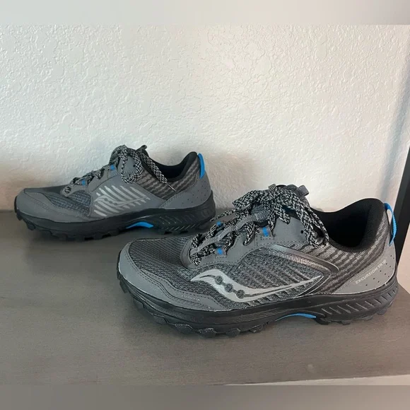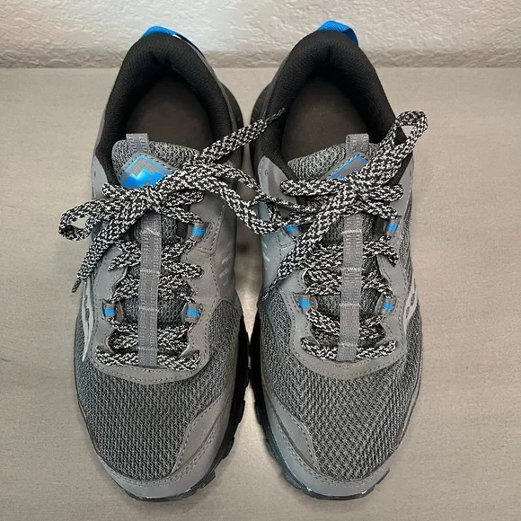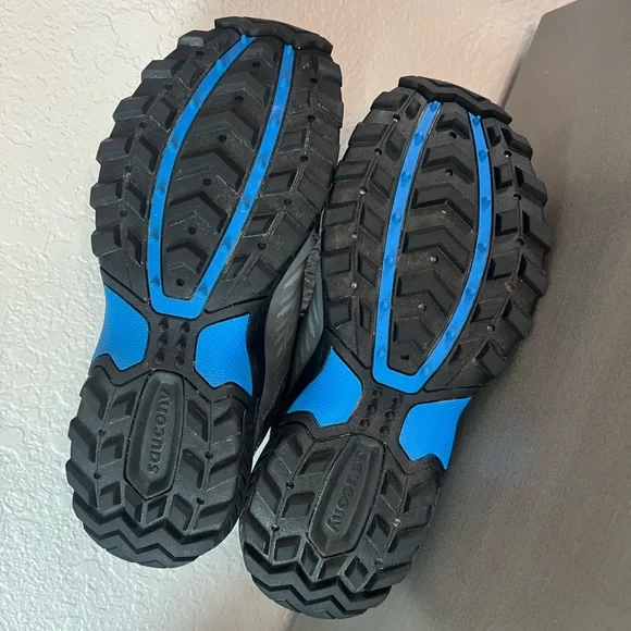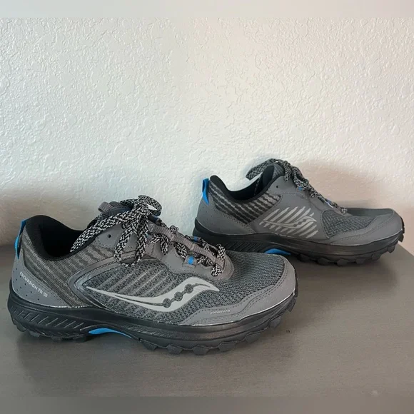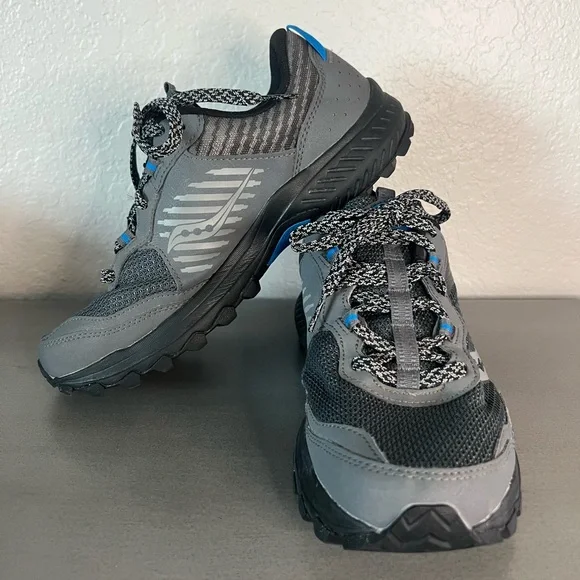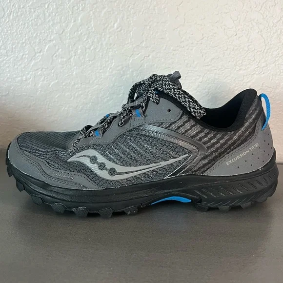 Saucony Men’s Size 8 W, Women’s Size 9.5 WExcursion TR15 Trail Running Shoe“Rugged outsoleVersatile cushioning - A moderate VERSARUN cushioning packs plenty of underfoot comfort no matter the destination.Durable protection - The trail-specific mesh with supportive overlays locks your foot into place and protects from debris without looking or feeling bulky”In excellent, gently used condition.Outdoors camping hiking mountains activewear athletic apparel fitness nature outdoorsy casual everyday wear hunting fishing sturdy strong spring summer sports black gray blueSee my other listings from Hoka, Patagonia, Arc’teryx, , The North Face and more - will bundle for extra discounts and combined shipping!