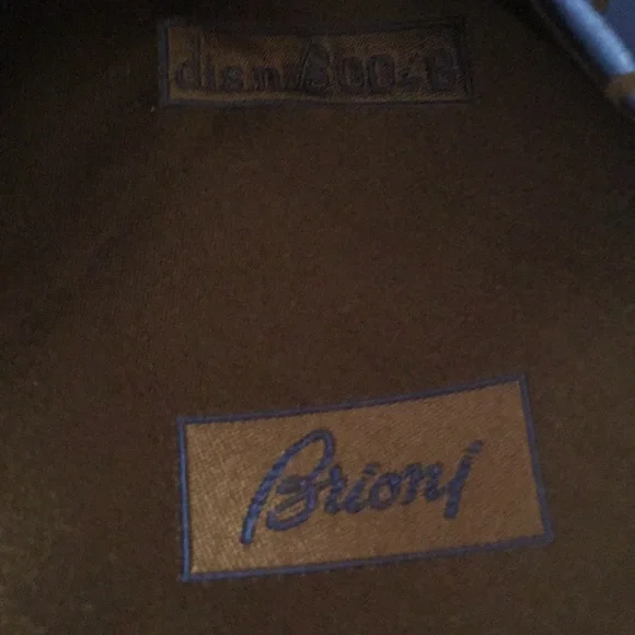 Brioni men’s tie. Handmade in Italy. 100% silk. Woven. Measures 3.5in x 70in (W x L). Very good condition. Small light stain as seen in picture, easily removed by hand or dry...