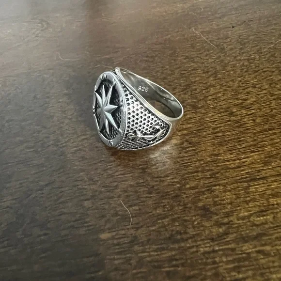 925 Sterling Silver Anchor and Compass and Ship Wheel Ring