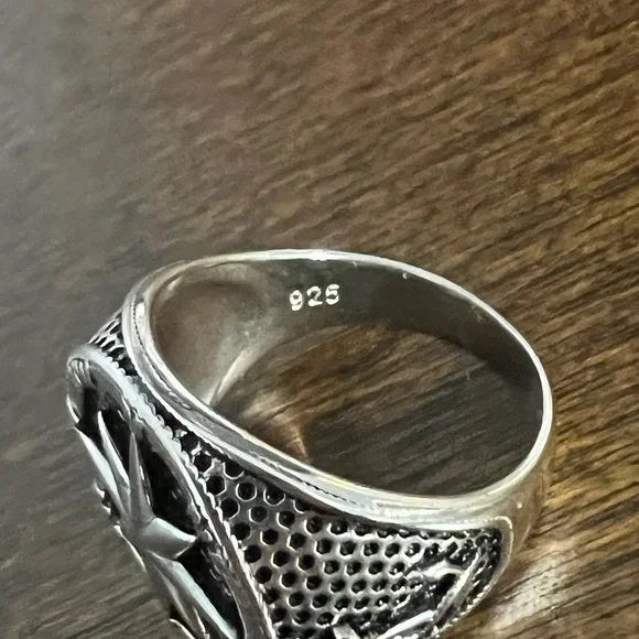 Elevate your jewelry game with this stunning 925 sterling silver ring featuring an anchor, compass, and ship wheel design. Crafted in Thailand, this piece boasts high-quality metal purity of 925 parts per 1000, making it a timeless addition to your collection. The ring shape is unique with an anchor, which makes it perfect for any nautical enthusiast.This ring is available in size 9 and made without tags, making it an excellent choice for any occasion. The absence of a main stone makes it versatile and suitable for everyday wear or a night out. Add this fine jewelry piece to your collection today and enjoy its intricate design and quality craftsmanship for years to come.