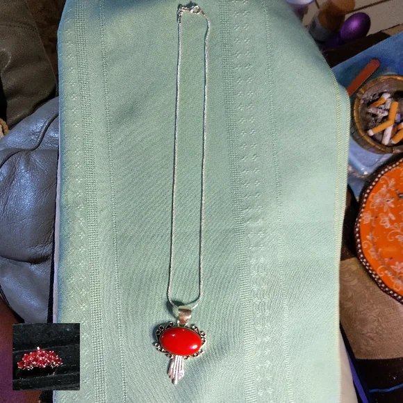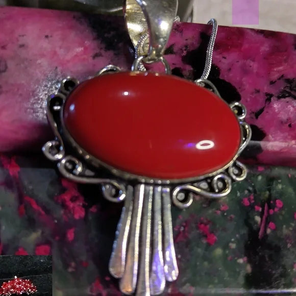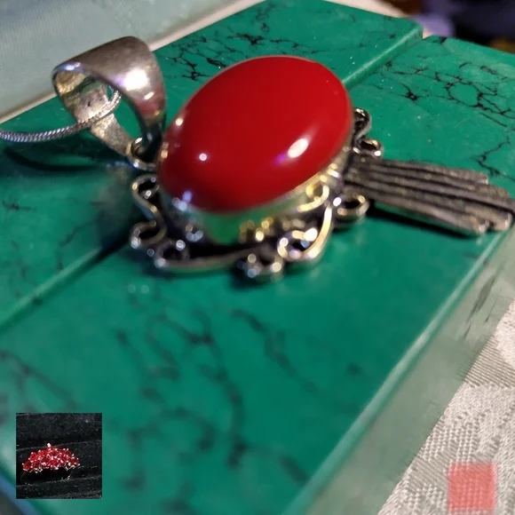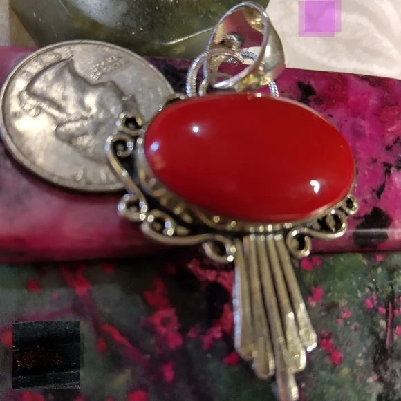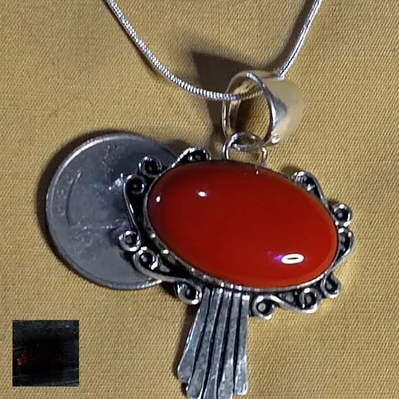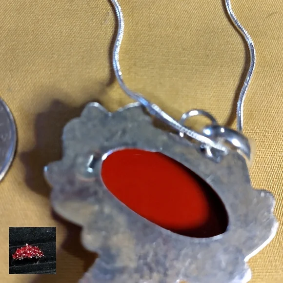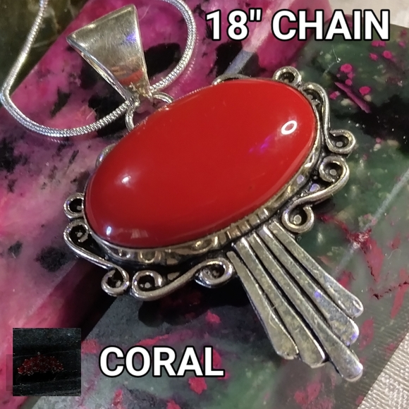 MEN´ - BIG, BOLD AND BEAUTIFUL! GENUINE CORAL AND STERLING PENDANT ON 18"- CHA…