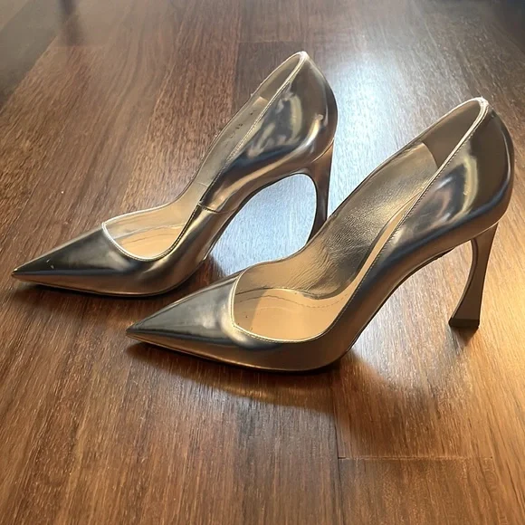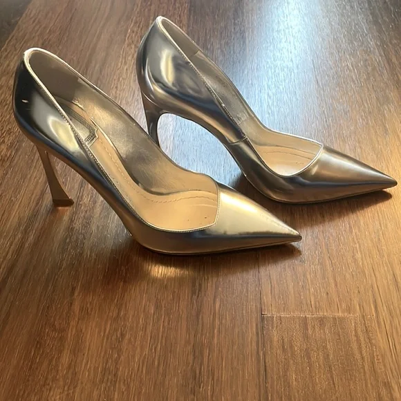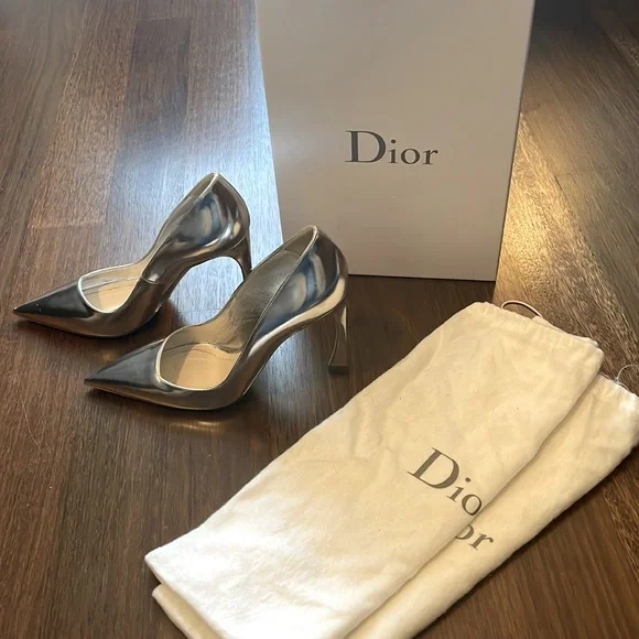 Christian Dior Defile Pointy Pump in Silver. Original dust bags and box! A few minor scuffs but worn only once and in fantastic condition!!Purchased at Bergdorf Goodman.