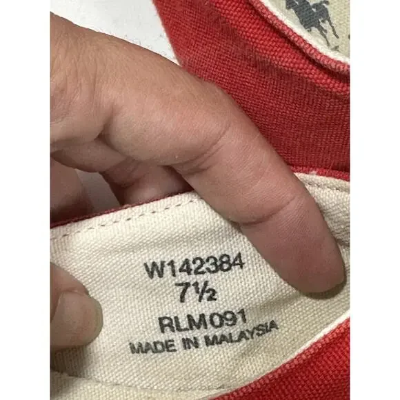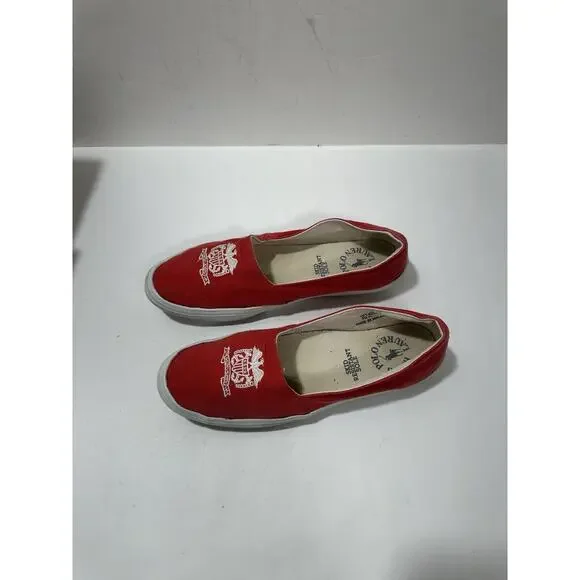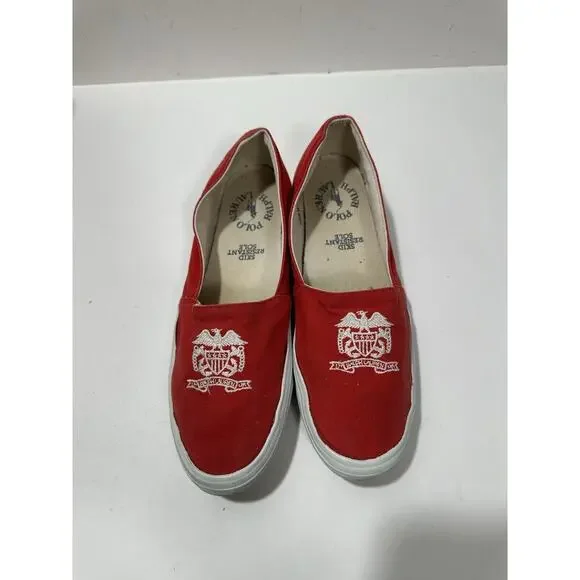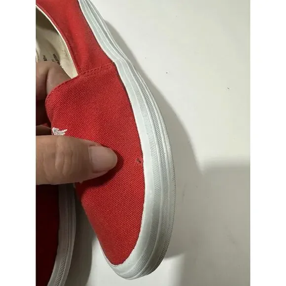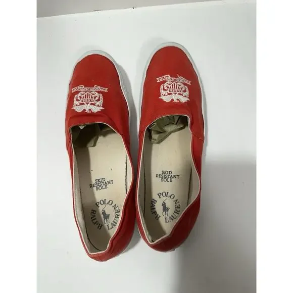 Polo Ralph Lauren Slip-On Red Canvas Casual Shoes Women Logo W142384 Sz 7.5 READShoes are vintage and used and There is a small hole shown on 3rd picture nothing major but it is there. See pictures for details.Cx224