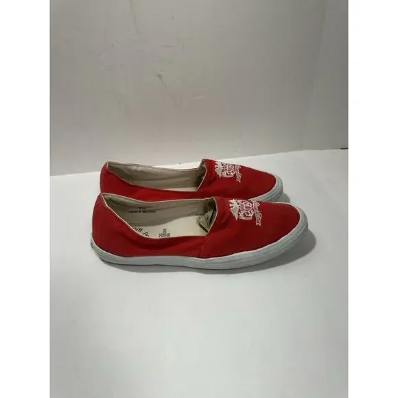 Polo Ralph Lauren Slip-On Red Canvas Casual Shoes Women Logo W142384 Sz 7.5 READ