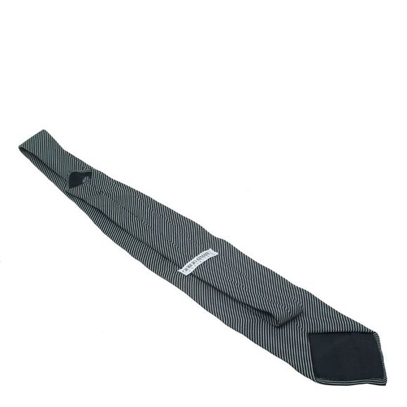 This silk woven classic tie from Giorgio Armani has a timeless appeal. With its overall striped fabric, this black tie will surely accentuate your charm.