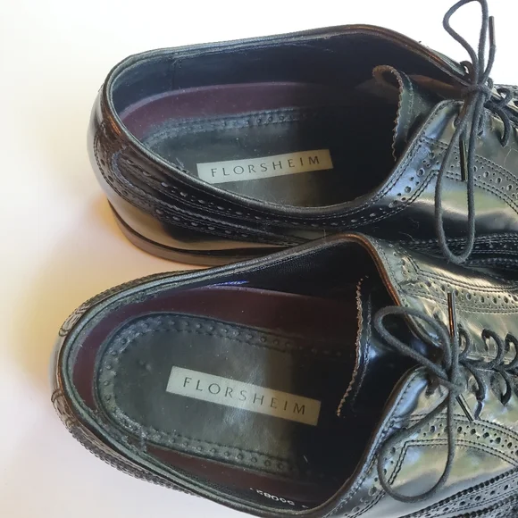 FLORSHEIM WINGTIP TIE-UP MEN´S BLACK OXFORD SHOES SIZE 11.5