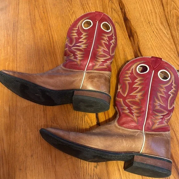 Justin Boots Red & Brown Cowboy Western Footwear EC. Size 12 D