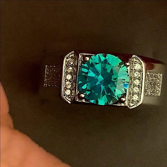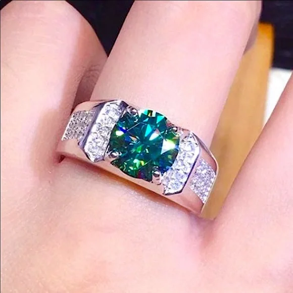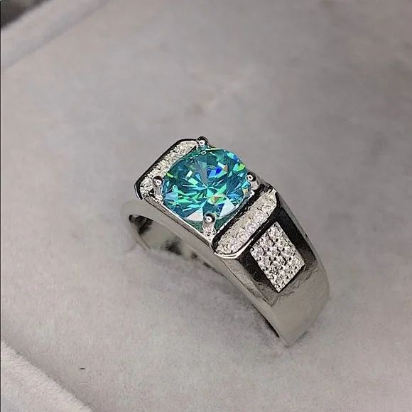Created Green Blue Moissanite Gemstone Wedding Adjustable Ring For Women Men Fashion JewelryRing size: adjustable Metal: PT950 plated Over Sterling Silver Offers are welcome
