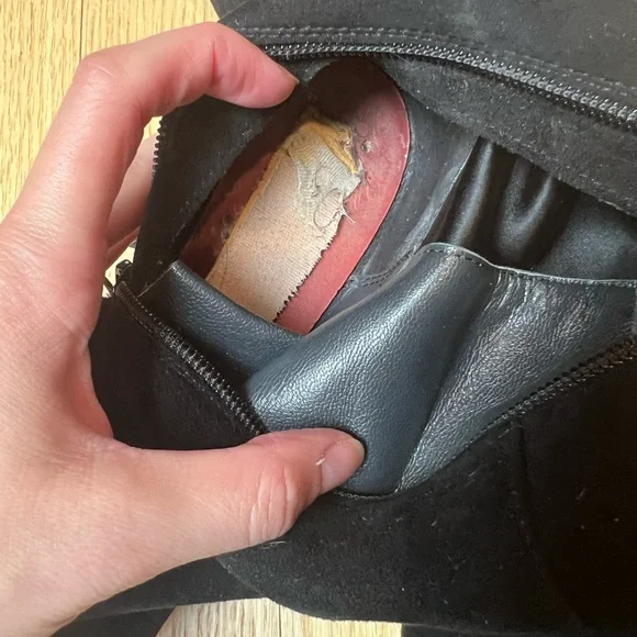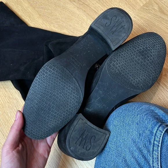Stuart Weitzman OTK Boots purchased in NYC. Look gorgeous from the outside just need new inner soles. Can’t find these exact size but at the time I purchased I was a 8.5 in heels 9 in sneakers and they fit perfectly.