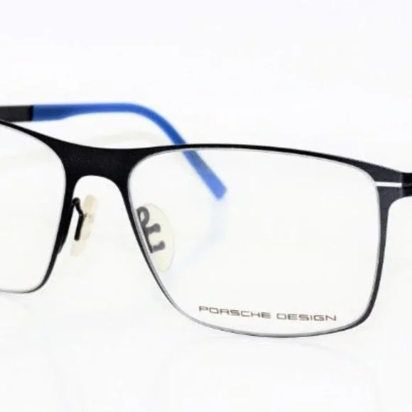 Porsche Design Model: P 8256-DColor: Black / BlueTitaniumBlack Frame Full RimDemo lenses (Add your prescription lenses) RX-able (Prescription, Bi-Focal/Progressive)Weight 22 gramsBrand New, With Box, Warranty Papers and Wash ClothCountry of Manufacture: ItalyMSRP: $399.9955mm (Lens) x39 mm (Height) 16 mm (Bridge) x 140mm(Temple) Authentication:All our Eyeglasses and Sunglasses are obtained directly from the Manufacturer.Guaranteed Authentic.We offer a 1 year manufactur