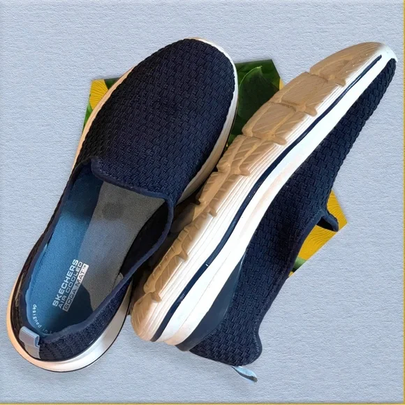 SKECHERS AIR-COOLED GoGa Mat Stretch Fit Slip On Sneakers Blue Women’s Size 10