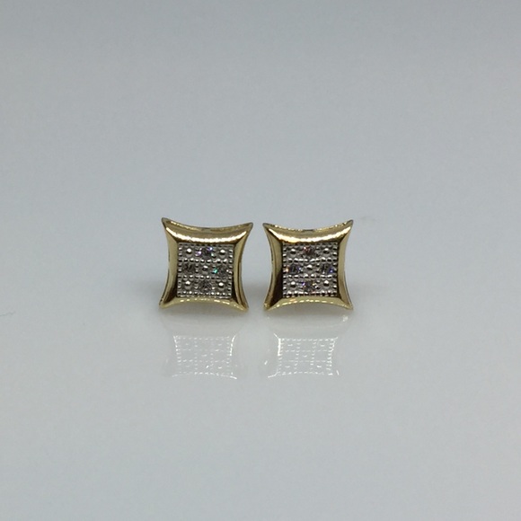 14K Solid Gold Square Micro Pave Stud Earrings 6.5mm